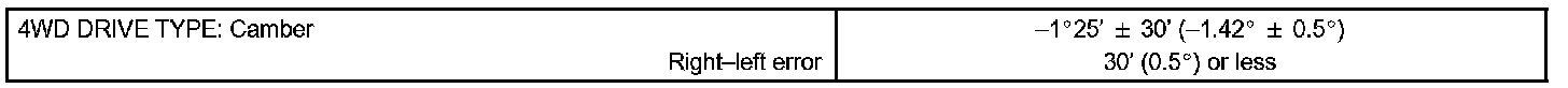 If the measured valve is not within the specified value, inspect the suspension parts for damage and/or wear and replace them if necessary because camber is not adjustable.