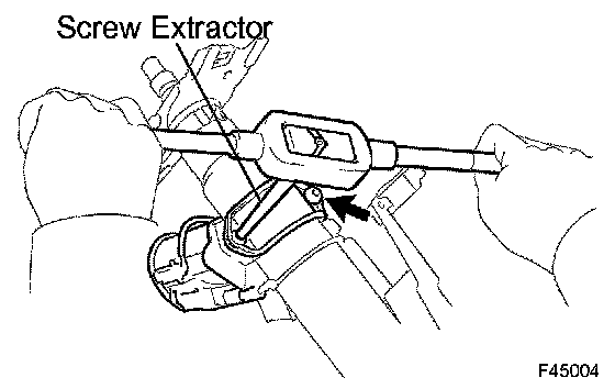 c. Using a screw extractor, remove the 2 bolts and steering column upper w/switch bracket assembly.