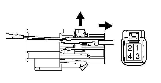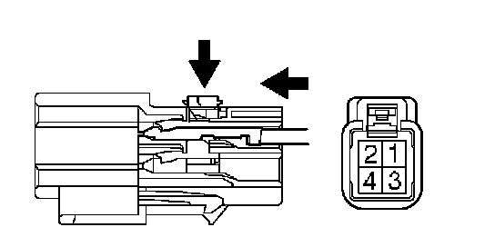d. Using a small screwdriver, disengage the locking lug of the terminals 1 and 2, and pull the terminals out from the unlock warning switch assembly rear side.