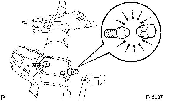 a. Temporarily install the steering column upper w/switch bracket assembly and steering column upper clamp with 2 new tapered-head bolts.