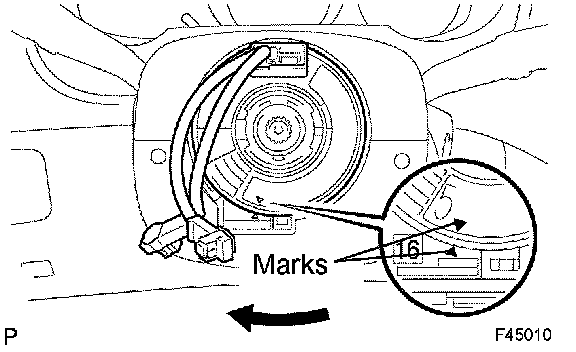 b. Place matchmarks on the steering wheel assembly and main shaft assembly.