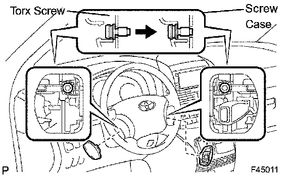 c. Install the steering wheel pad after confirming that the circumference groove of the torx screws is caught on the screw case.