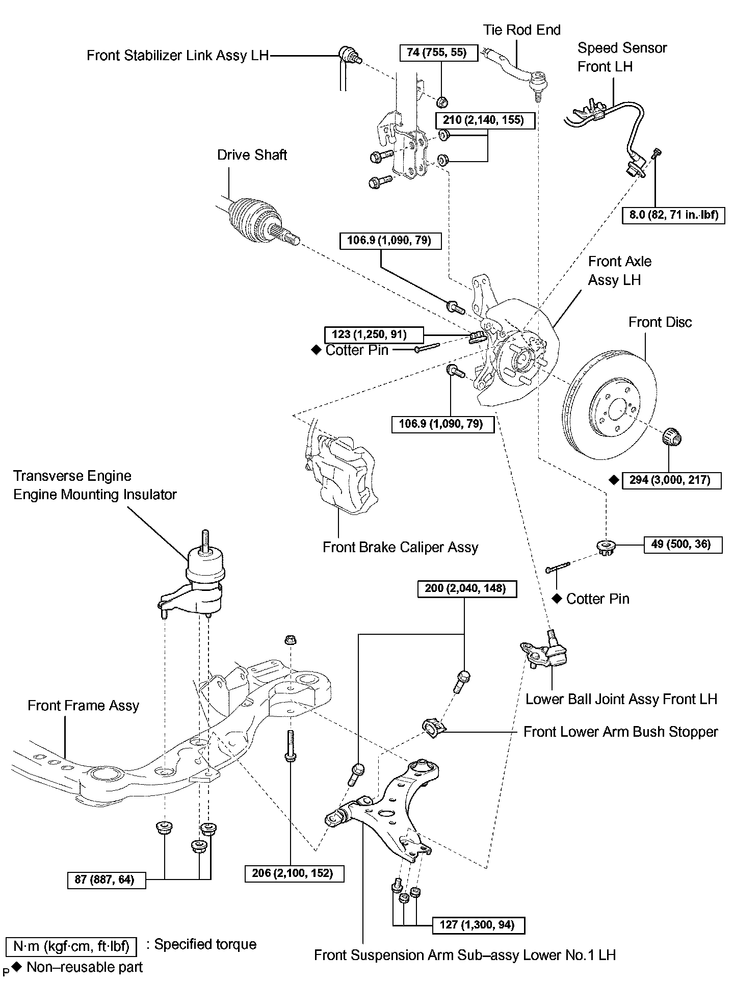 Torque: 206 Nm (2,100 kgf-cm, 152 ft. lbs.)