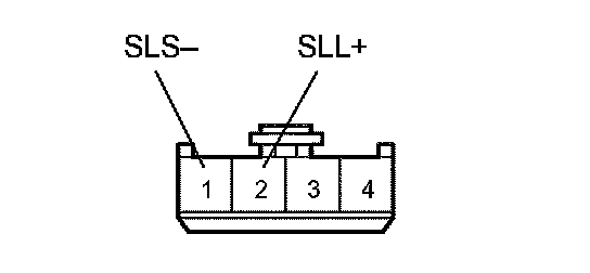 b. Connect SLL+ (2) terminal to the batteries' positive (+) terminal, and SLS- (1) terminal to the battery negative (A terminal, and apply about 12 V between SLL+ - SLS- terminals.