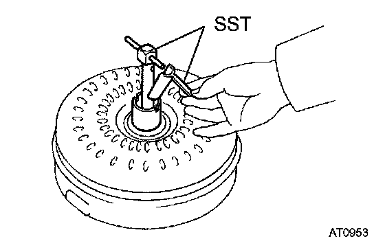2. Install SST so that it fits in the notch of the converter hub and outer race of the one-way clutch.