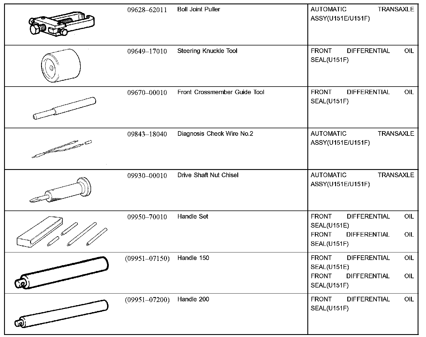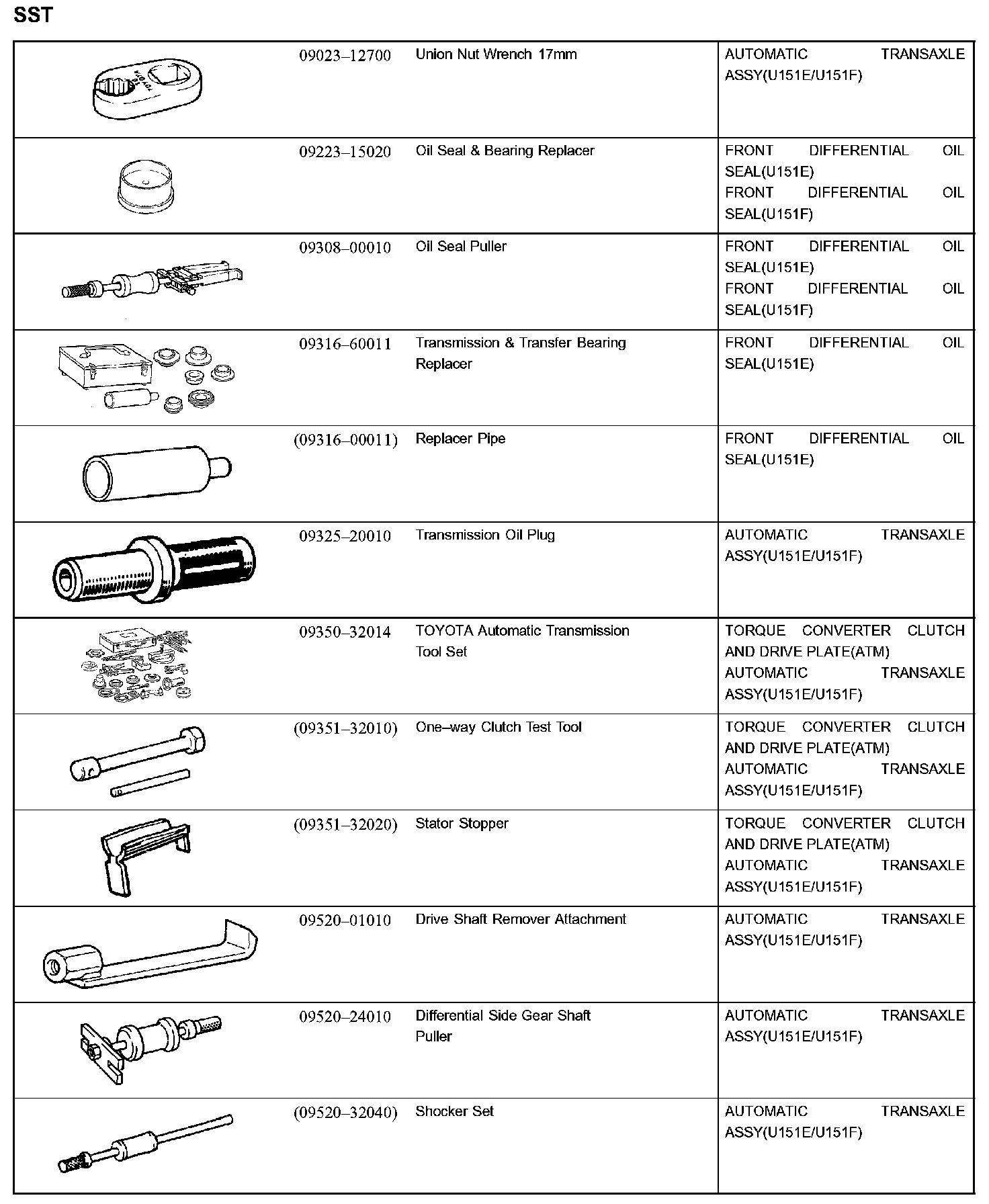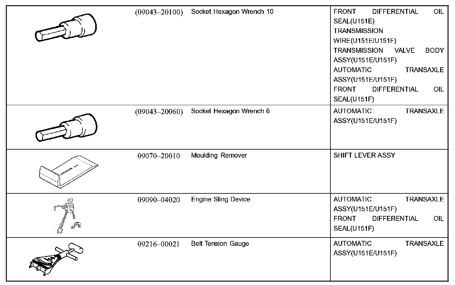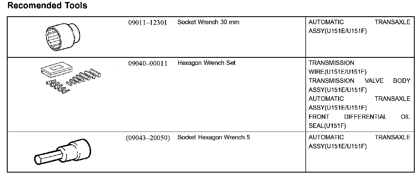Automatic Transmission/Trans - Recommended Tools Part 1: