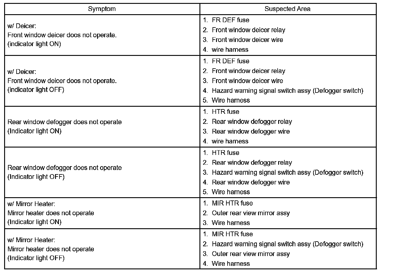 Problem Symptoms Table - Window Defogger System: