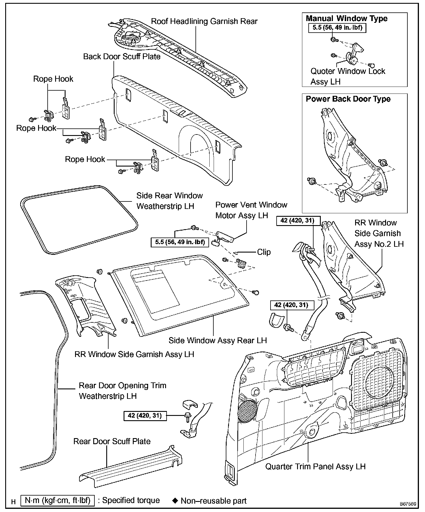 6. REMOVE SIDE REAR WINDOW WEATHERSTRIP LH