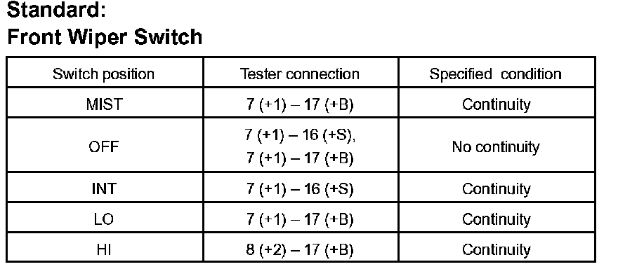 Wiper Switch: Testing and Inspection
