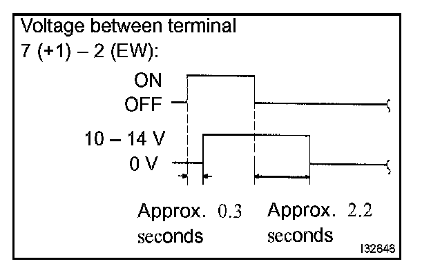 1. Connect the voltmeter (+) terminal to the terminal 7 (+1) of the connector, the voltmeter (-) terminal to the terminal 2 (EW) of the connector.