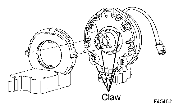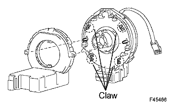 a. Release the claw fittings and remove the steering sensor from the spiral cable.