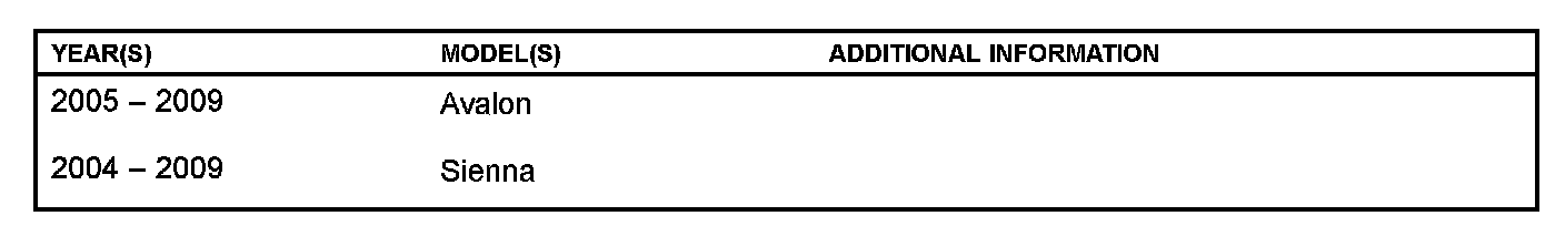 ^ Applicability has been updated to include 07-09 model years Avalon and Sienna vehicles.