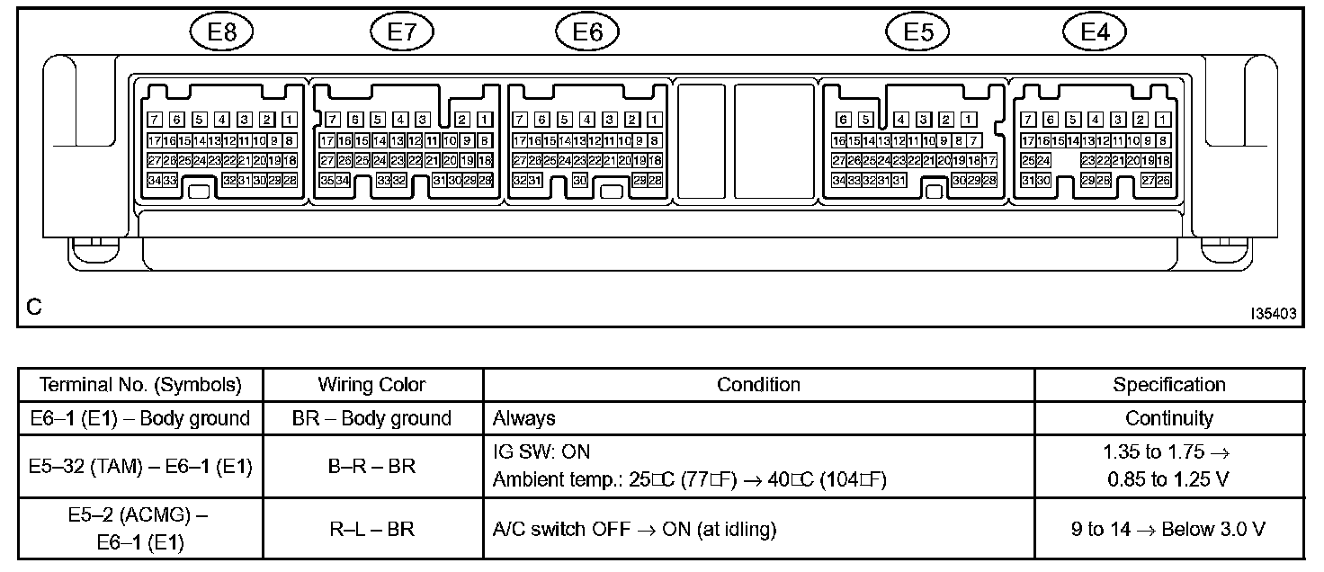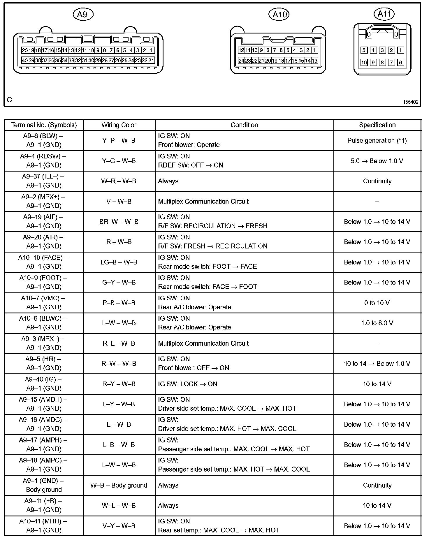 TERMINALS OF ECUTerminals Of Control Module / Pinouts - Air Conditioner Amplifier Assy Part 1: