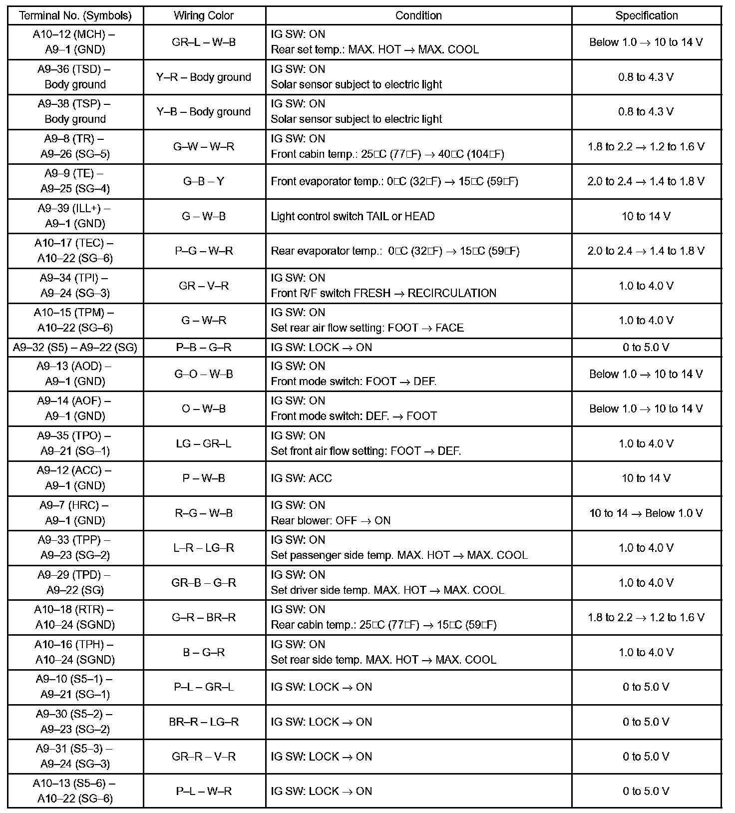 Terminals Of Control Module / Pinouts - Air Conditioner Amplifier Assy Part 2: