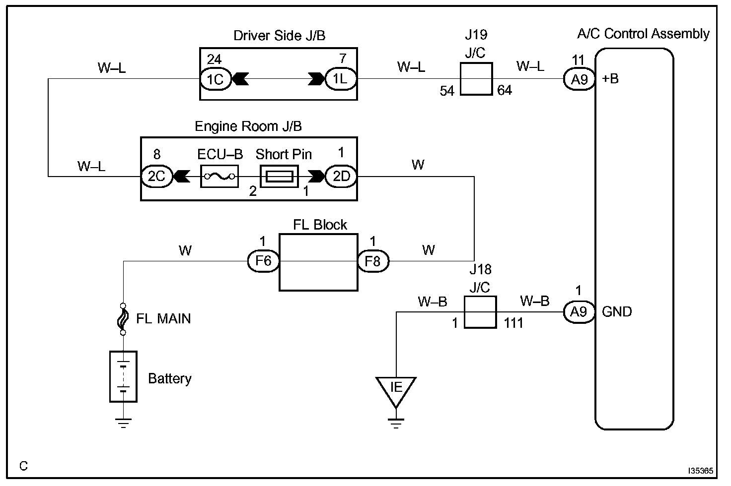 This is the back-up power source for the air conditioner amplifier. Power is supplied even when the ignition switch is off and is used for diagnostic trouble code memory etc.