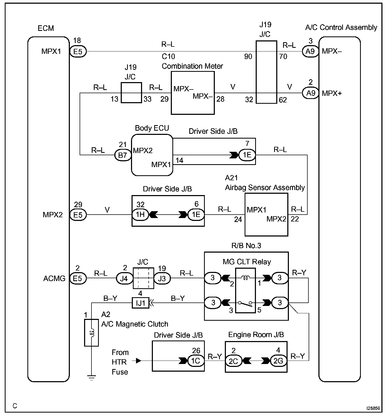 A/C amplifier turns the A/C magnetic clutch relay ON, thus turning the A/C compressor magnetic clutch ON.