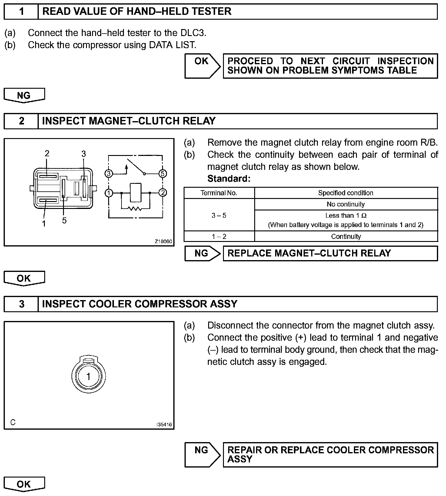 HINT: In case of using the hand held tester, start the inspection step 1 and in case of not using the hand held tester, start from step 2.