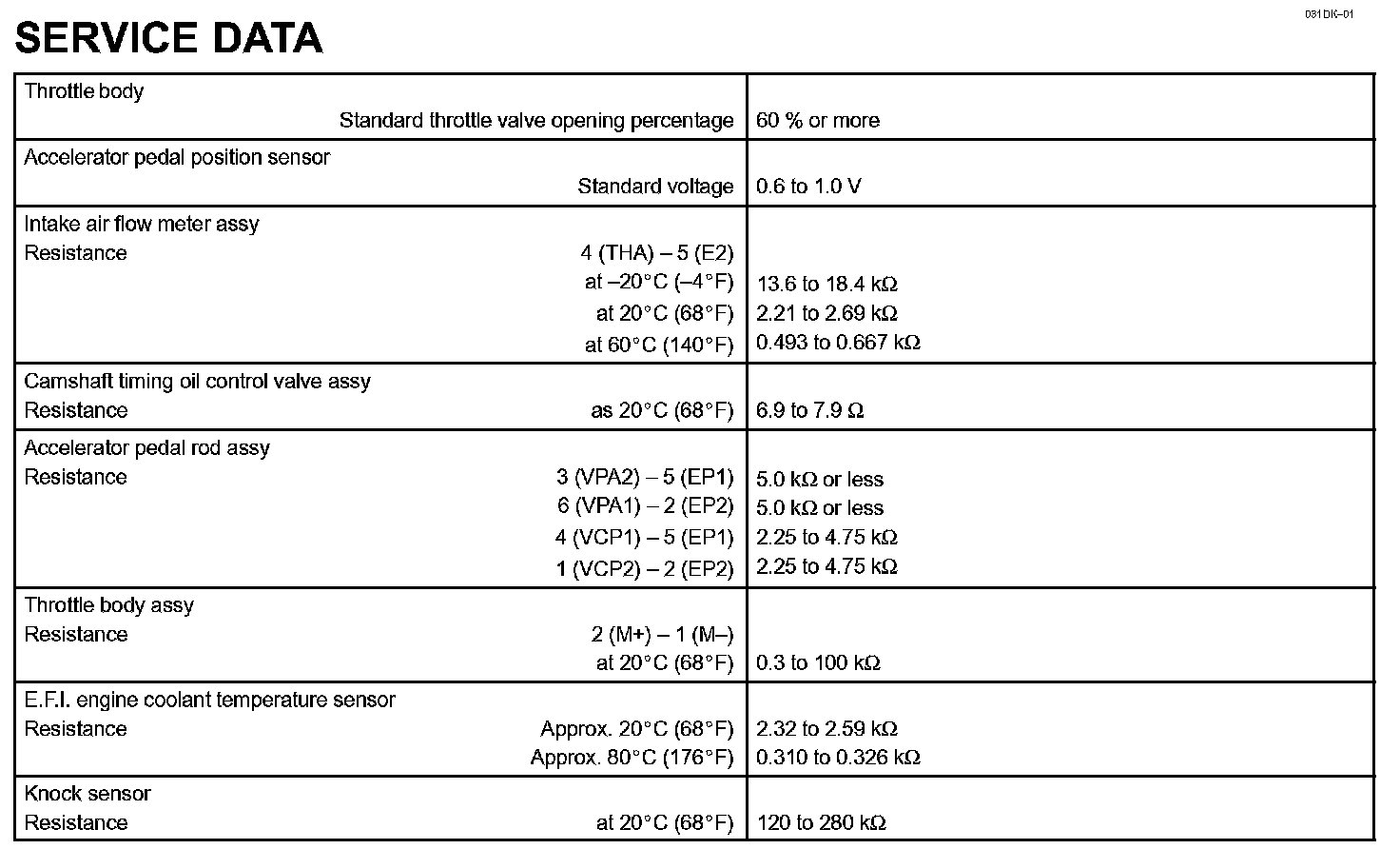 Engine Control System - Service Data: