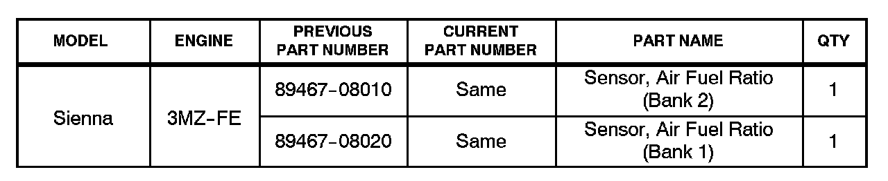 The Air Fuel (A/F) sensor manufacturing process has been improved to correct this condition. The following repair procedures should be used to properly diagnose and repair the affected vehicles.