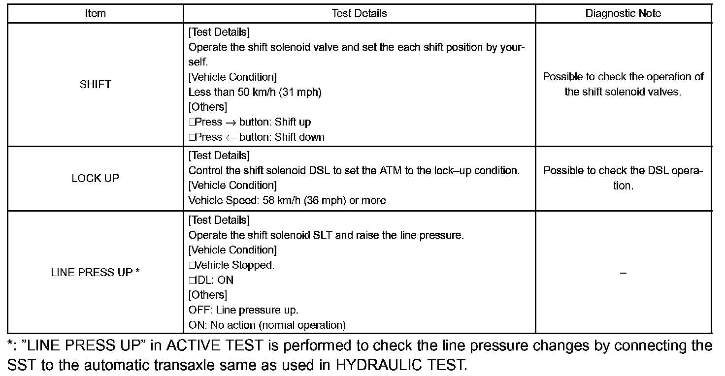 HINT: The pressure values in ACTIVE TEST and HYDRAULIC TEST are different from each other.