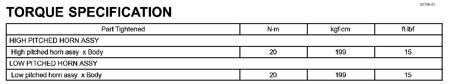 Communication - Torque Specification: