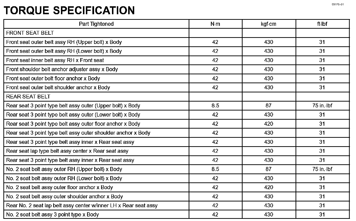 Seat Belt - Torque Specification: