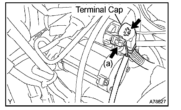 b. Open the terminal cap and remove the nut and the starter wire.