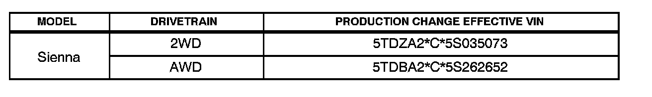 ^ 2004 - 2005 model year Sienna vehicles produced BEFORE the Production Change Effective VINs shown below.