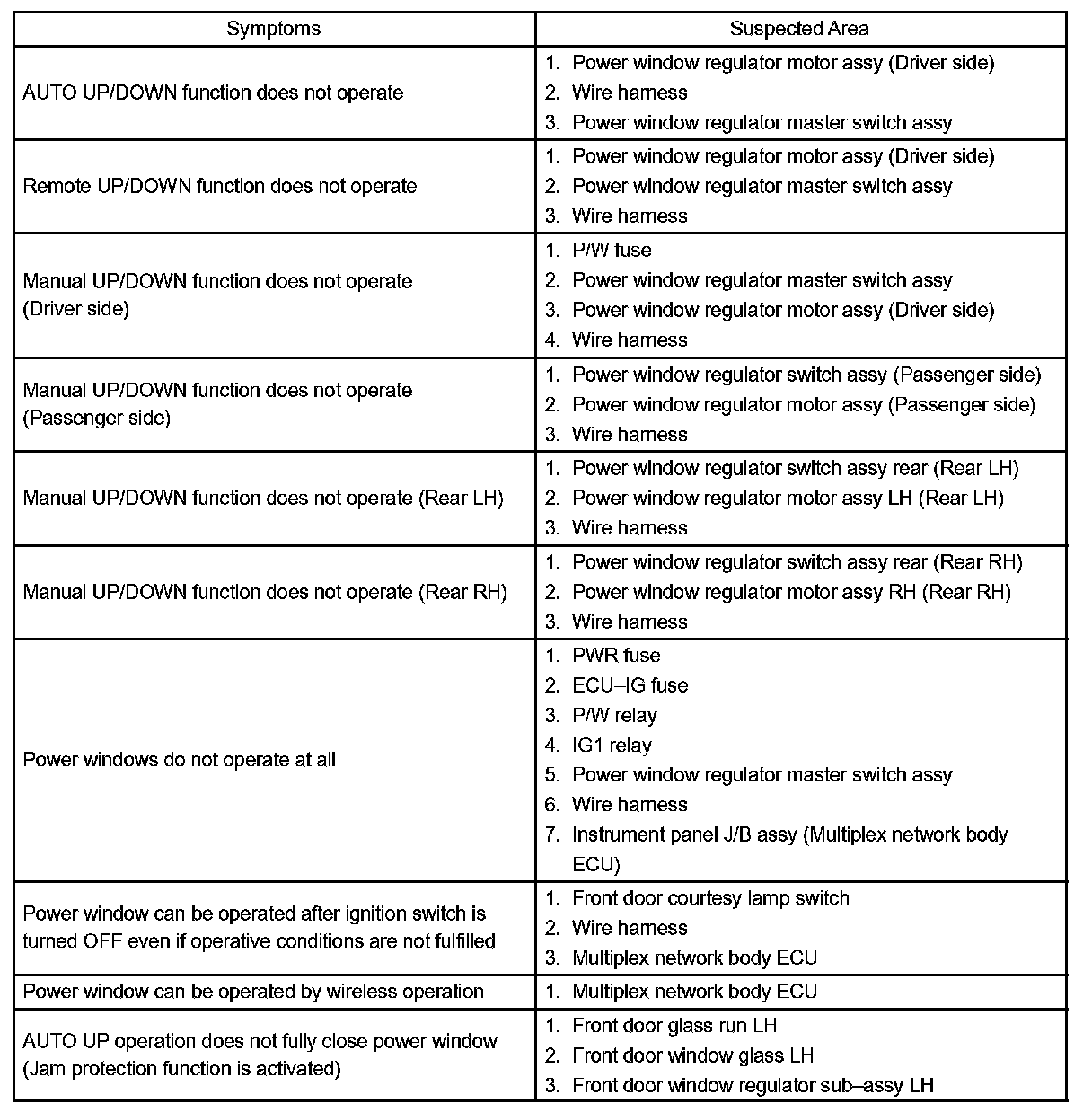 Problem Symptoms Table:
