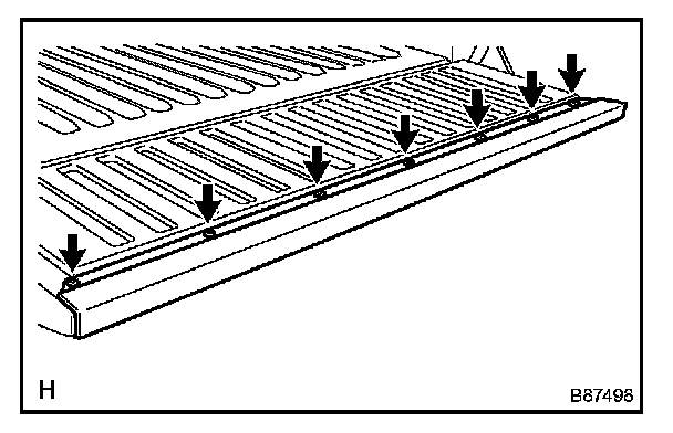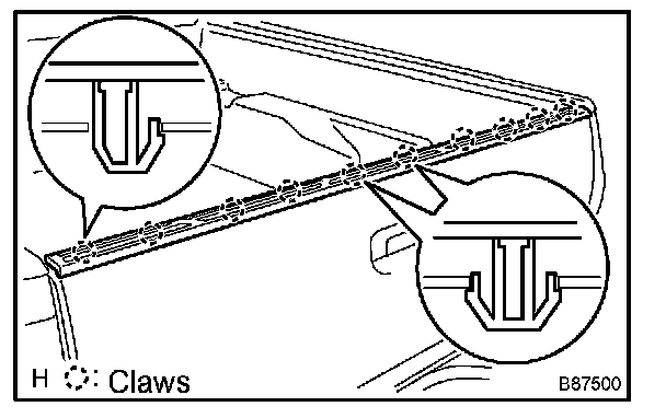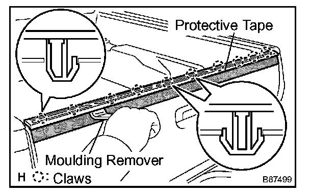 c. Using a moulding remover, disengage the 10 claws and remove the tailgate protector.