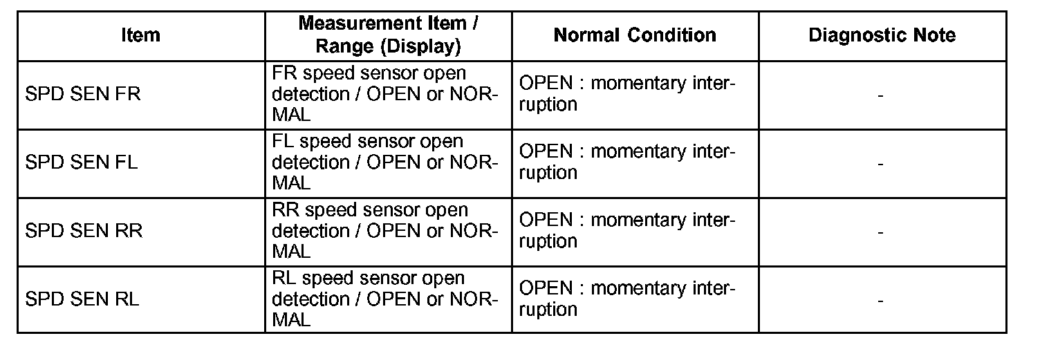 HINT: A momentary interruption (open circuit) in the connectors and/ or wire harness between the sensors and ECUs can be detected through the ECU data monitor function of the hand-held tester.