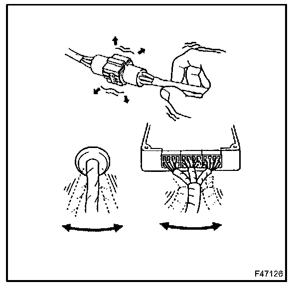 c. While observing the screen, gently jiggle the connector or wire harness between the ECU and sensors, or between ECUs.