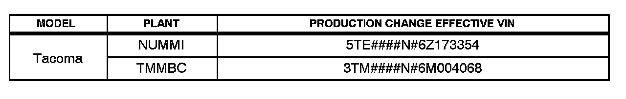 ^ 2005 - 2006 model year Tacoma vehicles produced BEFORE the Production Change Effective VINs shown below.