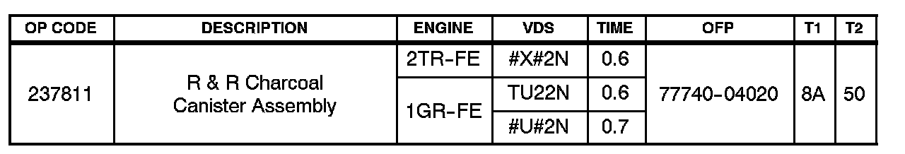 Some 2005 and 2006 model year Tacoma vehicles may exhibit M.I.L. "ON" with DTCs P043E, P043F, P2401, P2402, and P2419 stored. The EVAP pump module, which is part of the charcoal canister assembly, has been improved to correct this condition.