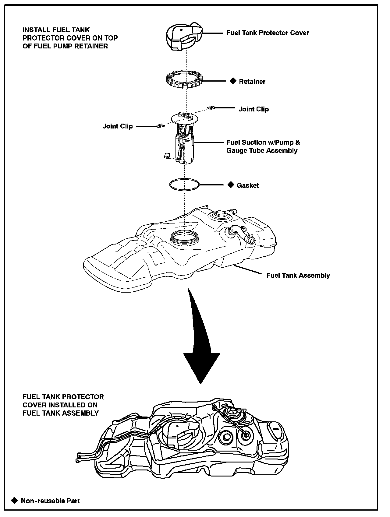 3. Install the fuel tank protector cover on top of the fuel suction plate sub-assembly as shown in the illustration.