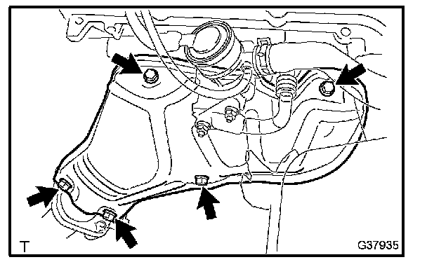 a. Remove the 5 bolts, then remove the exhaust manifold heat insulator No.1.