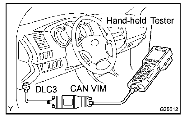 c. Connect the hand-held tester together with the Controller Area Network Vehicle Interface Module (CAN VIM) to the DLC3.