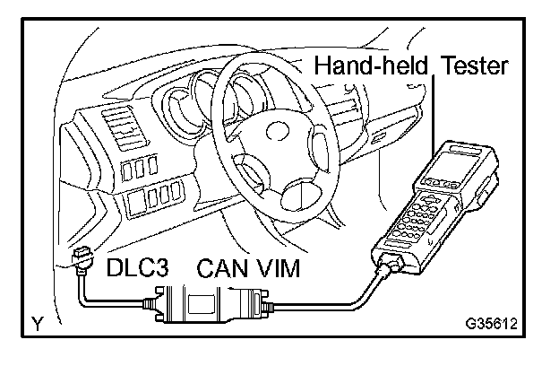a. Connect the hand-held tester to the CAN VIM. Then connect the CAN VIM to the DLC3.