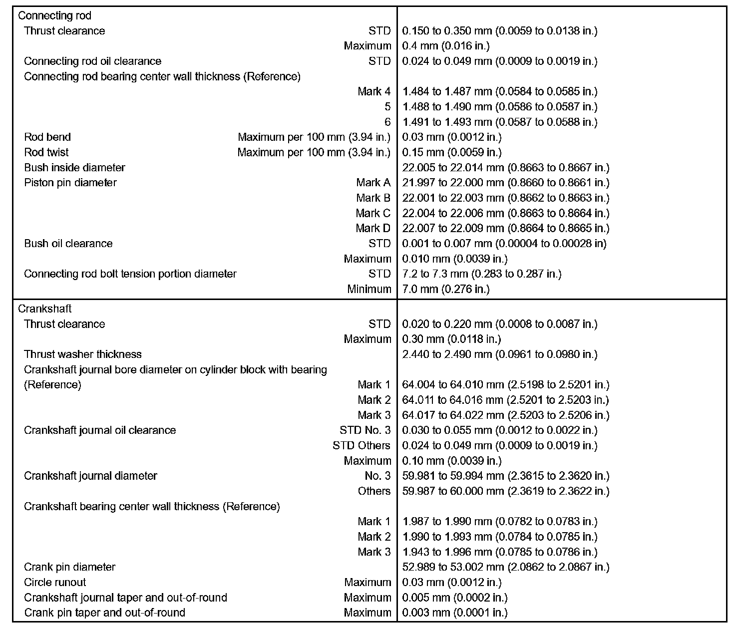 Engine Mechanical - Service Data Part 2: