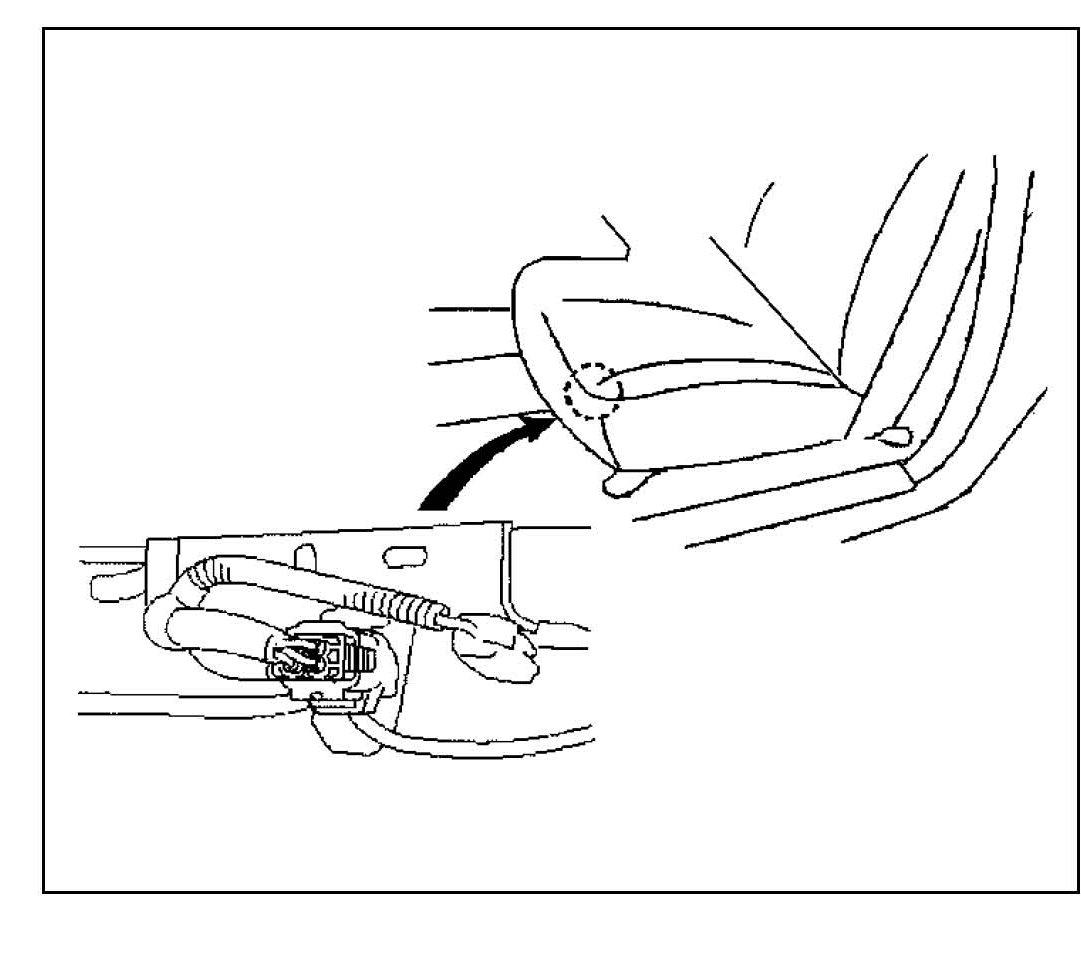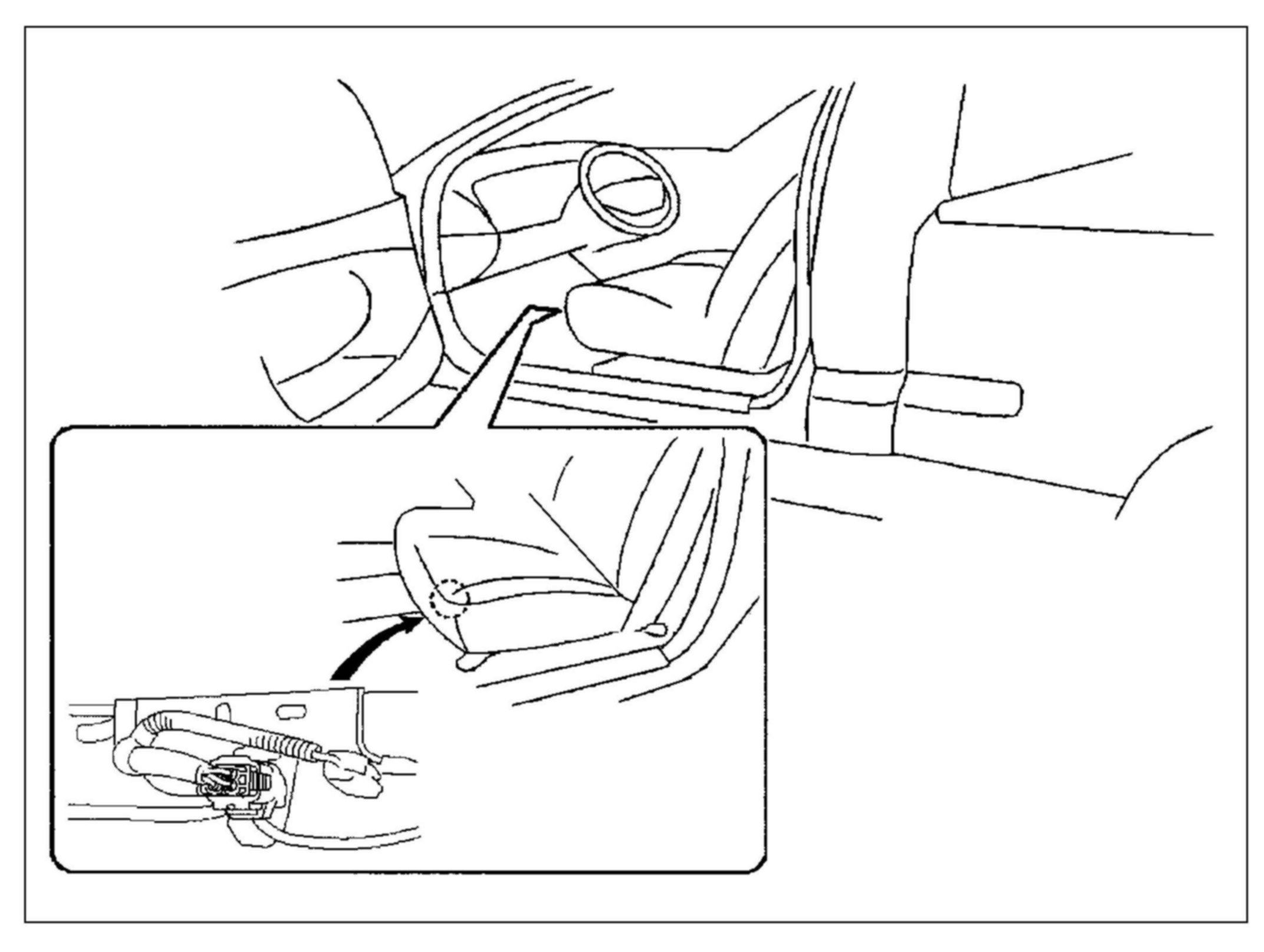 (d) Locate the floor wire harness and connector under the seat on the driver's side, closest to the front edge of the seat cushion.