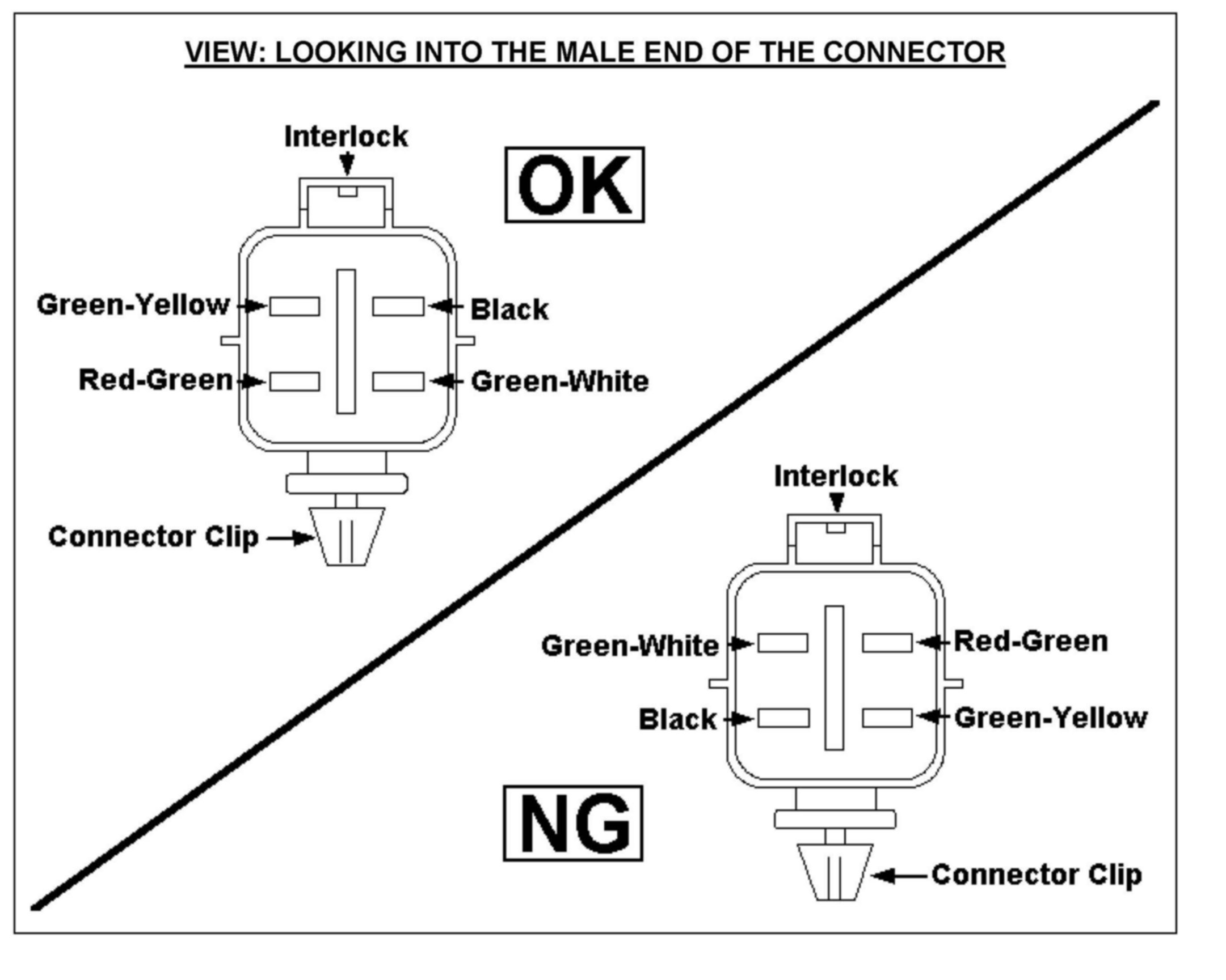 Make sure to view the male end of the connector in the proper orientation as shown in the illustration.