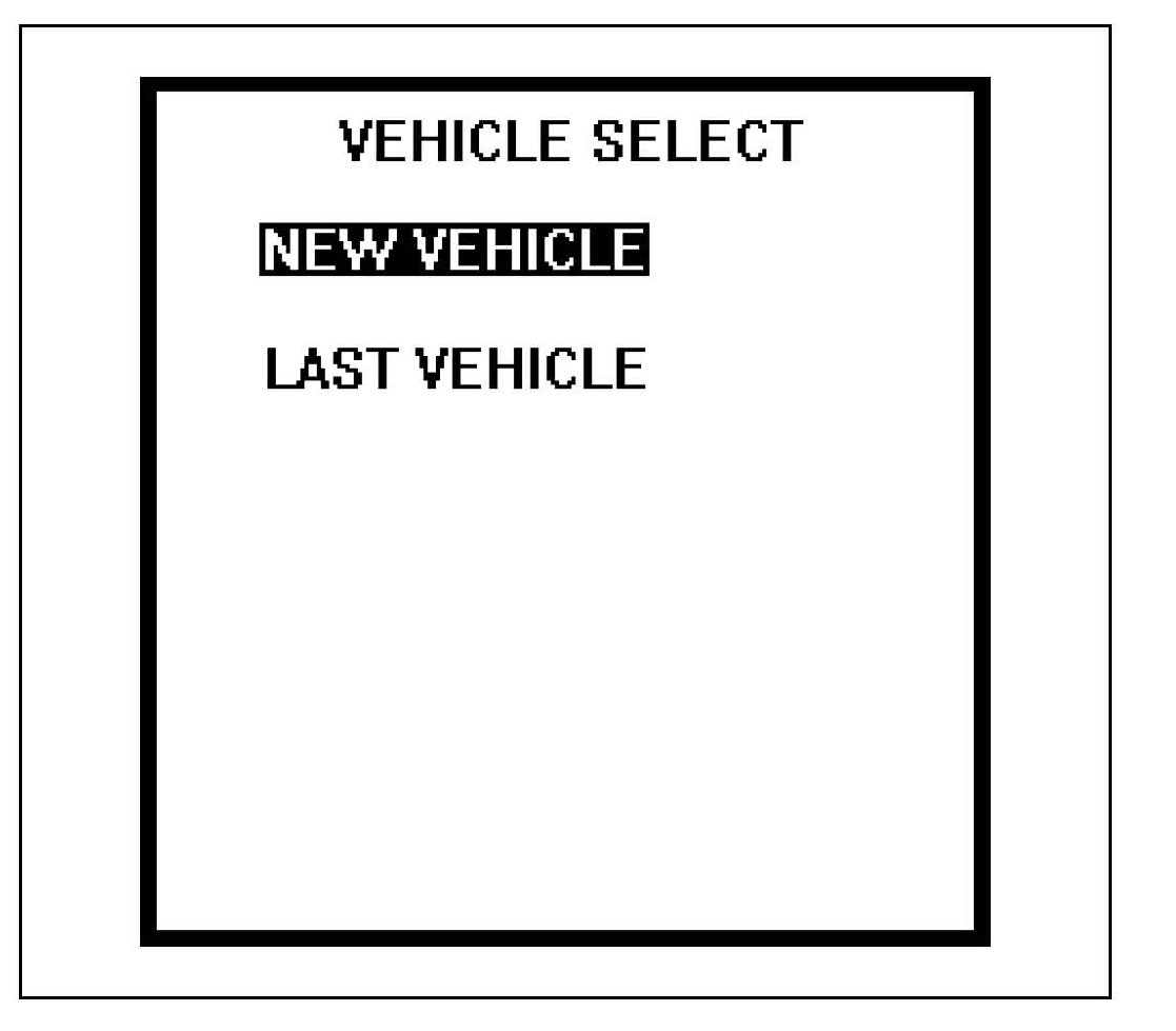 (g) Select "NEW VEHICLE" from the "VEHICLE SELECT" menu.