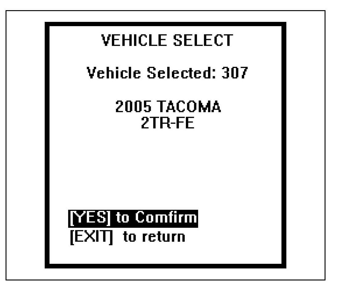 (i) Once these options are selected, a vehicle confirmation screen (shown in the illustration) will be displayed.