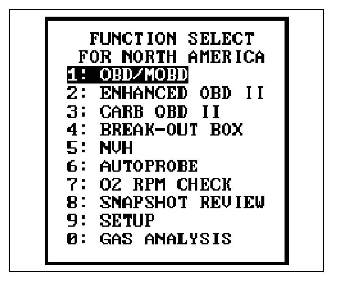 (f) Select "1: OBD/MOBD" from the "FUNCTION SELECT FOR NORTH AMERICA" menu.