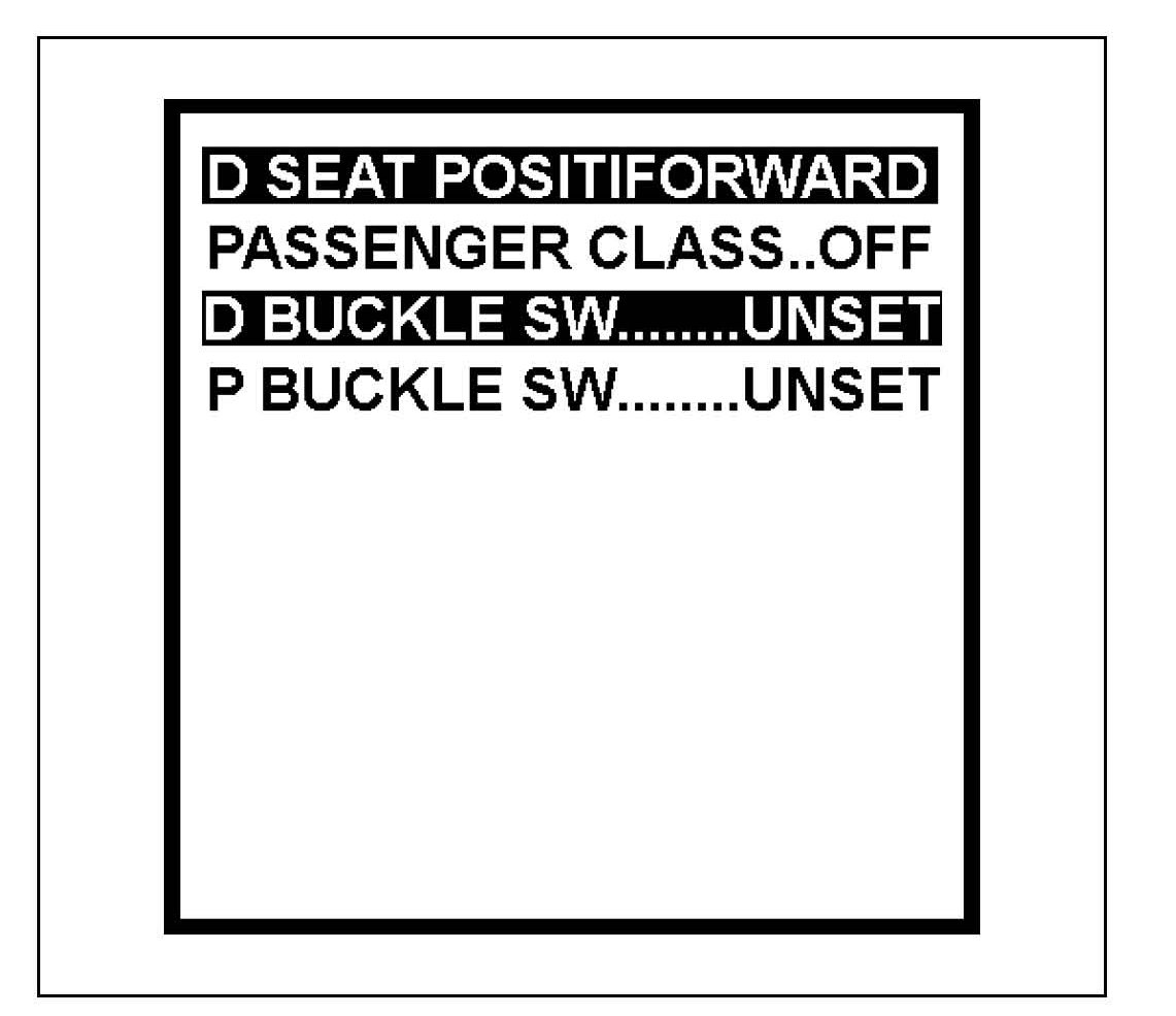 (Driver's seat belt buckle switch is unset/unbuckled).