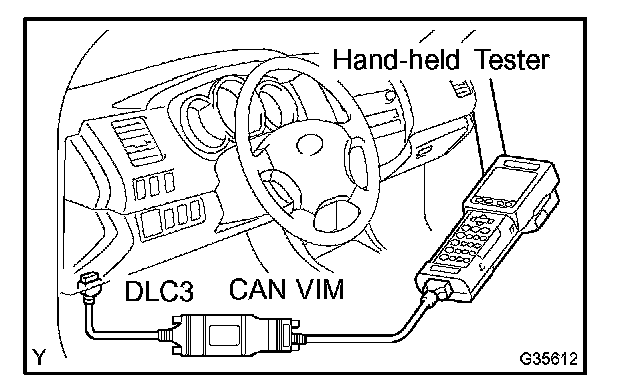 Since this system is equipped with CAN communication, CAN VIM (VIM: Vehicle Interface Module) connecting with handheld tester is necessary to display any information from the ECM on the tester. (Also communication between the handheld tester and the ECM uses a CAN communication signal.) When confirming DTCs and any data of the ECM, connect the CAN VIM between the DLC3 and the hand-held tester.