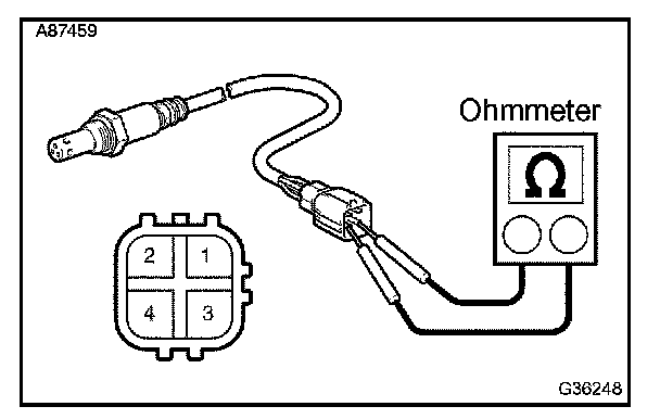 If the result is not as specified, replace the heated oxygen sensor.