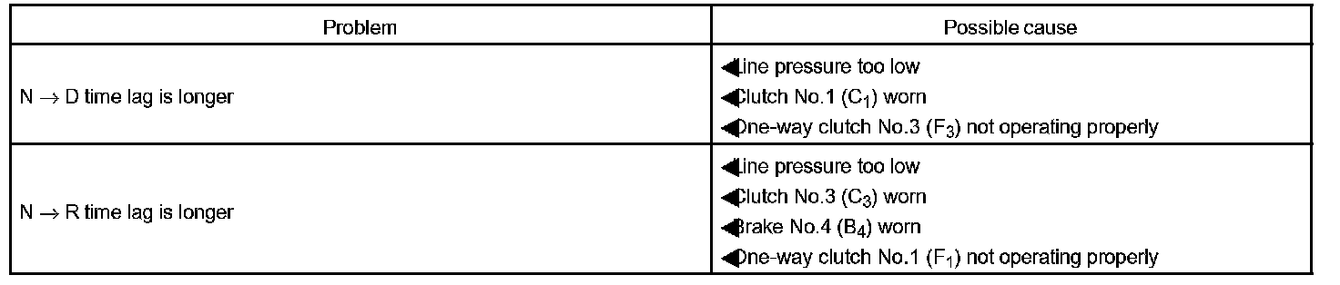 4. Shift the shift lever from the N to D position. Using a stop watch, measure the time from when the lever is shifted until the shock is felt.