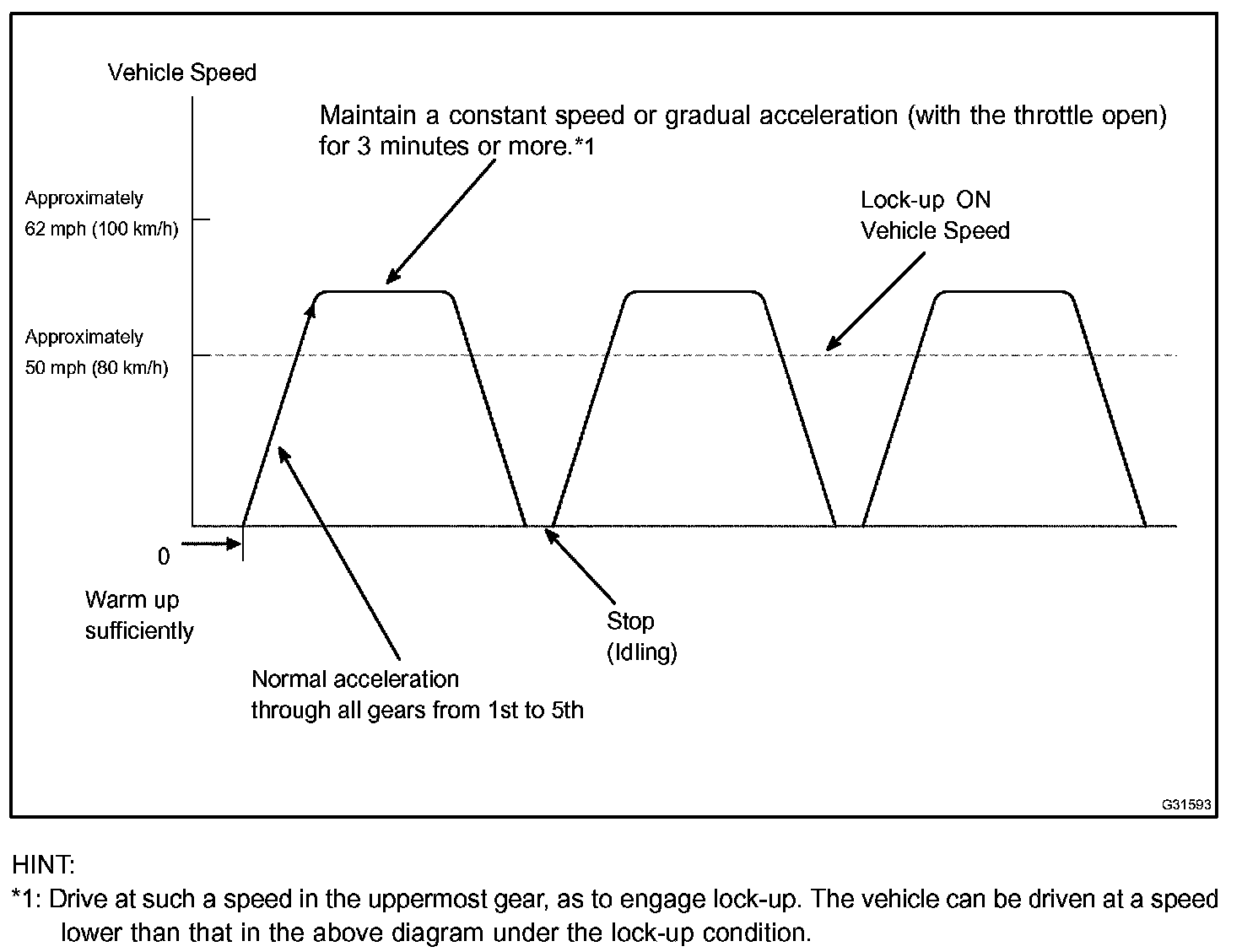 - Drive the vehicle through all gears. Stop -> 1st -> 2nd -> 3rd -> 4th -> 5th -> 5th (lock-up ON).