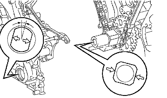 NOTICE: Pay attention not to wrap the chain and slipper over the timing chain cover seal line.